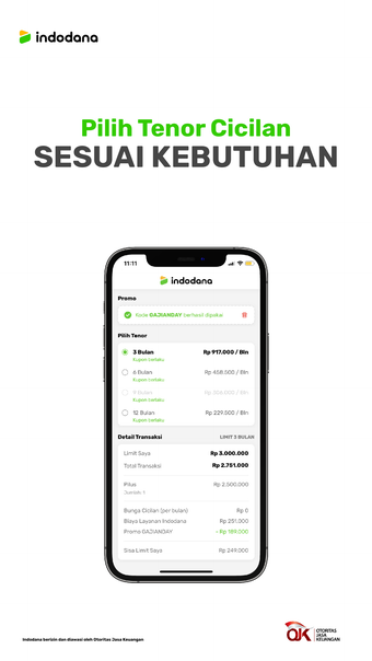 Indodana to aplikacja na iPhone, która oferuje usługi płatności i pożyczek w formacie PayLater. Umożliwia użytkownikom dokonywanie zakupów teraz i spłacanie w późniejszym terminie, z limitami kredytowymi sięgającymiIDR. Oferuje elastyczne opcje spłaty z minimalnym okresem 3 miesięcy i maksymalnym 12 miesięcy, przy niskim oprocentowaniu wynoszącym 3% dla wszystkich okresów. Aplikacja jest zgodna z regulacjami Otoritas Jasa Keuangan (OJK) oraz Asosiasi Fintech Pendanaan Bersama Indonesia (AFPI), co zapewnia bezpieczeństwo danych użytkowników.